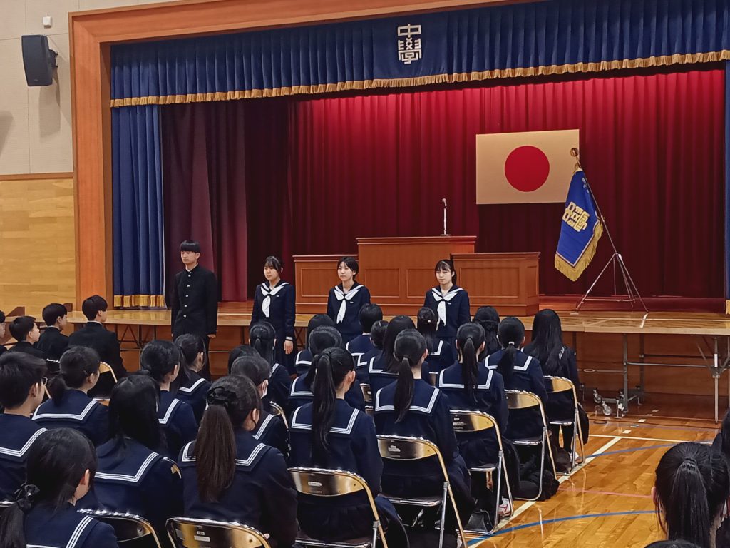 3月10日(火)に第78回卒業生の同窓会入会式が行われました。代表生徒が誓いの言葉を述べ、4名の世話人が紹介されました。吉澤会長からは、同窓会への歓迎と励ましのお言葉をいただきました。